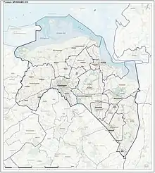 Depuis la fusion des communes d'Appingedam, de Delfzijl et de Loppersum au pour former la nouvelle commune d'Eemsdelta, dix communes forment la province de Groningue :