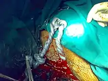 - jumeau ou masse acardiaque : il s'agit d'une complication rare (entre 1 sur trente mille et 1 sur quarante mille grossesses), où un jumeau n'a pas de cœur (ou réduit à l'état de vestiges). Le jumeau sain joue le rôle de « pompe cardiaque » pour son jumeau acardiaque. Le diagnostic est échographique. L'évolution peut conduire à la mort et l'involution du jumeau acardiaque, qui peut rester à l'état de « jumeau papyracé » (momifié) ou disparaître (« jumeau fantôme »), sans répercussion notable sur le jumeau sain. Dans d'autres cas, les deux jumeaux peuvent évoluer jusqu'à la naissance, mais la mortalité du jumeau sain est alors élevée (près de 50 %) par insuffisance cardiaque et hypoxie chronique, par le fait que son cœur doit fonctionner pour deux, en recevant du sang désoxygéné deux fois. La prise en charge de cette complication n'est pas codifiée et varie selon les équipes[11].
