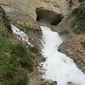 La grotte donne naissance à une source d'eau souterraine, qui avec celle de Rouais dans la région de Aaqoura, est le principal exutoire des nappes souterraines des massifs qui enserrent la vallée du Nahr Ibrahim. La rivière naissante forme à l'entrée de la grotte des cascades successives. Elle est enjambée par un pont en pierre datant de l'époque des Romains. Au nord du porche, parmi les éboulis, elle reçoit un premier affluent, trop-plein de la rivière souterraine[2].
