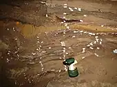 Les occupations humaines ultérieures ont généré une accumulation de débris sur et autour de ces blocs sur une épaisseur dépassant 2 m. La compaction a conduit les dépôts à draper les blocs, conduisant parfois à la formation de couches quasiment verticales. À proximité des parois latérales et du fond de la grotte, les dépôts du MSA se sont parfois contractés en laissant un espace comblé ensuite par des dépôts du LSA. Par endroits, de larges blocs ont glissé ou se sont fragmentés, causant des remaniements des dépôts sus-jacents. Malgré ces anomalies, l’essentiel des dépôts du MSA est demeuré in situ et n’est pas perturbé. Après avoir identifié les vestiges remaniés et écarté ceux provenant de zones susceptibles d’être contaminées par des niveaux plus récents, les archéologues estiment que plus de 95 % du matériel MSA mis au jour est digne de confiance[8].