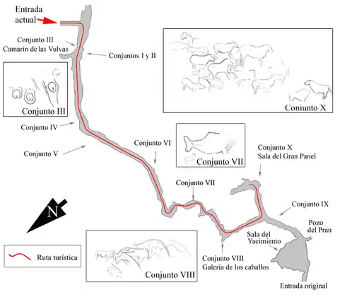 La grotte compte 12 panneaux de peintures préhistoriques, ce qui en fait un des plus riches exemples de l'art préhistorique dans le nord de l'Espagne. La plus ancienne de ces peintures date d'environ 33 000 ans avant le présent[3], selon la datation par le carbone 14, et certains scientifiques pensent qu'elle aurait pu être réalisée par des Néandertaliens[4], bien que cette théorie n'ait pas été prouvée.