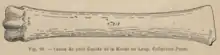 - Figure 14, os travaillés : le poinçon en no 1 est le seul (des fouilles Breuil) ayant conservé sa pointe. La baguette en bois de renne (no 2) est pointue à un bout et biseautée à l'autre bout : contrairement à la règle, le biseau est du côté cortical et non du côté spongieux[14].