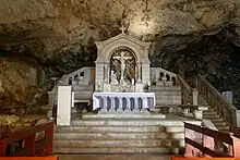 La grotte, qui est un lieu de pèlerinage depuis le début du christianisme, est aménagée en chapelle. Elle peut accueillir 1 000 personnes[4].