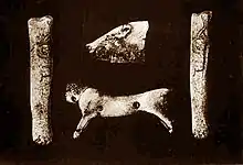 D'autres panneaux contiennent des représentations d'animaux moins abouties (la plupart n'étant que de simples esquisses par piquetage non suivi de gravure). Sont représentés un glouton, un cervidé ou capriné acéphale, un cheval acéphale, deux aurochs sans cornes. Tous sont orientés vers la gauche sauf une tête de cervidé et un oiseau.