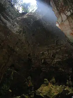 Le gouffre dit "la Grave" est la première et la plus grande salle du système karstique qui mesure 100 mètres de longueur, 50 de largeur, 60 de profondeur. Elle est le seul orifice qui communique avec l’extérieur.