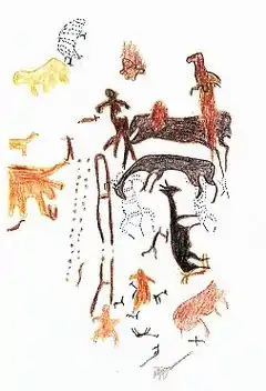 Les peintures pariétales représentent des scènes de chasse. Les figures représentées sont petites : 5 cm de haut pour les personnages et 10 cm pour la faune. On voit par exemple des hommes poursuivant des camélidés sud-américains avec des armes telles qu'arcs et propulseurs.