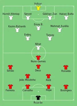 - 7 juin : lors du match Portugal - Turquie, le défenseur central lusitanien Pepe marque un premier but qui est refusé pour une position de hors-jeu sur une tête en début de match avant d'ouvrir le score à la 61e minute à la suite d'un une-deux avec l'attaquant de la seleçao Nuno Gomes. Raúl Meireles scelle la victoire de l'équipe entraînée par Luiz Felipe Scolari pendant les arrêts de jeu de la rencontre. À noter que trois tirs de l'équipe portugaise ont buté sur le poteau (Ronaldo une fois, Nuno Gomes deux fois). Portugal 2, Turquie 0. Classement : Portugal et Tchéquie 3 pts, Suisse et Turquie 0.