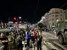 Le soir du , les combattants du groupe Wagner commencent à se retirer de Rostov-sur-le-Don[53]. Ces derniers sont applaudis et acclamés par un attroupement d'habitants[56]. Des voitures de police viennent ensuite prendre position autour du QG, mais la foule les accueille par des huées, en traitant les agents de « traîtres »[56].