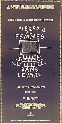 En 1992, le GIV créé l'événement Vidéos de femmes dans le parc, qui vise à diffuser des vidéos de réalisatrices au Parc La Fontaine, à Montréal[15]. Anne Golden et Cecil Castellucci, à l'origine du projet, se sont inspirées des Drive-In ou ciné-parcs américains pour lancer ce festival en plein air qui a pour but de sensibiliser un public plus large à la production de vidéos faites par des femmes[16]. Pour la première édition du , au Théâtre de Verdure, une douzaine de vidéos ont été choisies puis regroupées en quatre thèmes : Images et musiques (sur la démarche créatrice des artistes), Le « travail » des femmes (traitant du travail domestique), Langage : corps, paroles, cultures... (explorant la résilience) et Les sentiers de la santé. Des artistes telles qu'Esther Valiquette, Joane Fréchette, Ève Lamont, Christine Martin, Tatiana Gaviola, Catherine Derosiers, Sara Diamond, Tamithy Basaraba et Jennifer Babcock font partie de la programmation. Le festival est subventionné par le Conseil des arts du Canada[16].