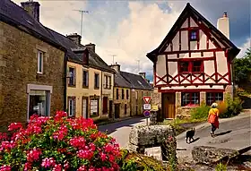 ![]() ![]() ![]() ![]() De haut en bas, de gauche à droite : La maison à pans de bois Ty-Ru, la porte des Rohan (XVIe siècle), Rue commerçante principale de la commune, Vue depuis les remparts de Guémené (on aperçoit l'église et son clocher séparé caché par la végétation). |
