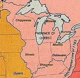Durant la guerre de Sept Ans en Amérique, les nations amérindiennes avaient soutenu la France pour empêcher la prise du territoire du Nord-Ouest par les colons anglais. Après cette guerre, Pontiac continua la guerre avec les Britanniques et les colons anglais pour empêcher la prise du territoire. C'est alors que les Britanniques réservèrent le territoire pour les Amérindiens lors de la proclamation royale de 1763. Mais par la suite, les colons anglais continuèrent de traverser le territoire. Puis la couronne britannique céda le territoire aux Canadiens dans l'Acte de Québec en 1774 au grand mécontentement des colons.