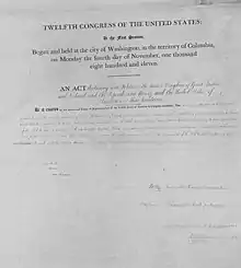 Voulant conserver leur neutralité dans ce conflit européen, les États-Unis, sous l’impulsion du président Thomas Jefferson, adoptent les lois sur l'embargo en 1807 interdisant aux navires américains de naviguer vers les pays étrangers et aux bateaux étrangers d’entrer dans les ports américains. Cette loi est particulièrement mal accueillie, notamment chez les marchands de Nouvelle-Angleterre et est rapidement remplacée par le Non-Intercourse Act (littéralement, « acte de non intervention ») en 1809, qui n'interdit que le commerce avec les deux belligérants[14]. Avec l’arrivée de James Madison à la Maison-Blanche et devant l’impossibilité de mettre en application cette loi, celle-ci fut remplacée en 1810 par la loi « Macon 2 », qui lève tous les embargos et stipule que si le Royaume-Uni ou la France rétablit le commerce avec les navires de commerce américains, les États-Unis réinstaureront l’embargo sur l’autre pays[15],[16]. Voyant là une occasion à saisir, Napoléon annonce que tous les éléments qui freinaient les importations américaines seraient abolis. En vertu du Non-Intercourse Act, les États-Unis restaurent donc l’embargo contre le Royaume-Uni, ce qui les rapproche davantage de la guerre. En 1809, alors que les Britanniques s’y refusent toujours, la France a déjà accepté de finalement reconnaître le pavillon américain en mer, ce qui revenait à une reconnaissance officielle des États-Unis comme État souverain et libre de commercer avec qui il l’entendait.