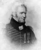 Le gouverneur-général, George Prévost, reçut l’instruction de lancer une invasion dans la région de New York et du Vermont. Il avait une grande force d’invasion, beaucoup plus puissante que celle des Américains. Cependant, une fois arrivé à Plattsburgh, il retarda l’attaque jusqu’à l’arrivée d’une flotte dirigée par le capitaine George Downie[86], à bord de la frégate HMS Confiance achevée dans la hâte[87]. Prévost força Downie à lancer une attaque prématurée, mais il ne réussit pas à lui fournir le soutien militaire promis. Cet échec conduisit à la défaite de la flotte et à la mort de Downie lui-même lors de bataille de Plattsburgh le [86],[87]. Les Américains eurent dès lors le contrôle du lac Champlain. Sans sa flotte, Prévost ordonna de rebrousser chemin puisqu'il croyait trop dangereux que les Britanniques restent en territoire ennemi après la perte de leur suprématie navale[86].