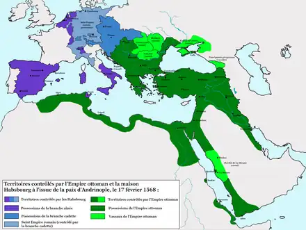 - La guerre entre les Habsbourg et les Ottomans. Elle voit s'opposer les ambitions de Soliman le Magnifique à celles de Ferdinand puis de Maximilien II en Europe centrale.