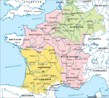 - (de) Cet article est partiellement ou en totalité issu de l’article de Wikipédia en allemand intitulé « Merowingischer Bruderkrieg » (voir la liste des auteurs).