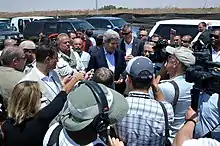 Le lundi , le Premier ministre d'origine sunnite Riad Hijab fait défection deux mois après sa nomination pour rejoindre l'opposition[106] au Qatar, tandis que la télévision d’État annonce son limogeage. Mi-, une dizaine de diplomates syriens à l'étranger ont officiellement rejoint la contestation[107]: Bassam al-Imadi (ancien ambassadeur en Suède), Nawwaf al-Cheykh Fares (ambassadeur en Irak), Lamia Hariri (chargée d’affaires à Chypre), Abdel-Latif al-Dabbagh (ambassadeur aux Émirats arabes unis), Mohammed Tahsin al-Faqir (attaché de sécurité près l’ambassade à Oman), Farouq Taha (ambassadeur en Biélorussie), Mohammed Housam Hafez (conseiller et consul en Arménie), Khaled al-Ayyoubi (chargé d’affaires au Royaume-Uni), Khaled al-Saleh (chargé d’affaires au Nigeria) et Dani Ba’aj (deuxième secrétaire à la représentation permanente auprès de l’ONU à Genève).