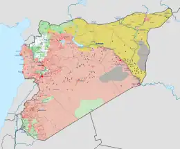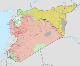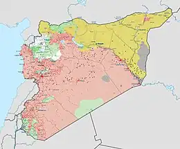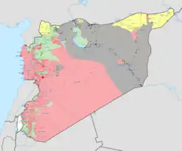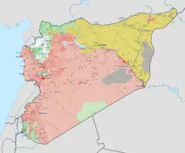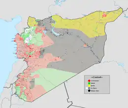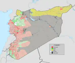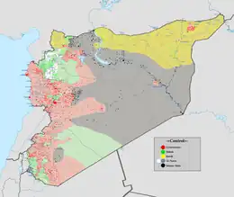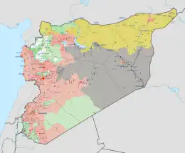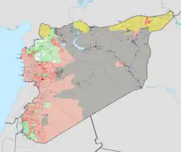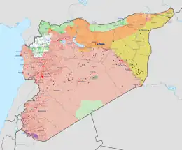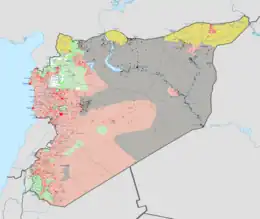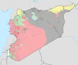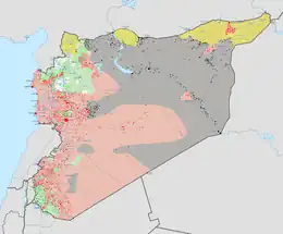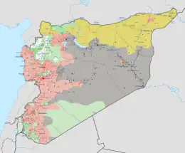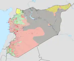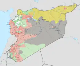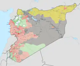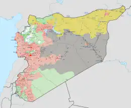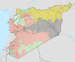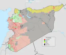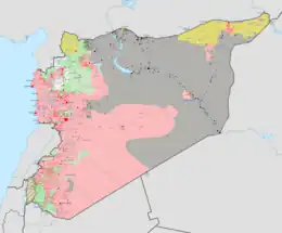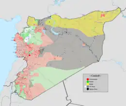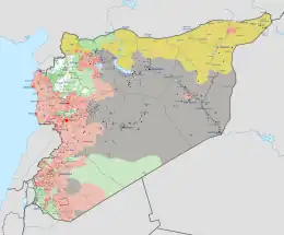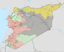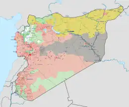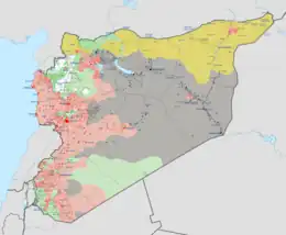 - (en) Carte géante actualisée de la guerre civile syrienne, Wikipedia anglais.