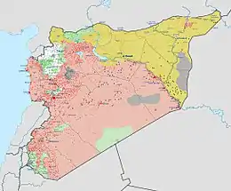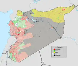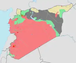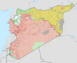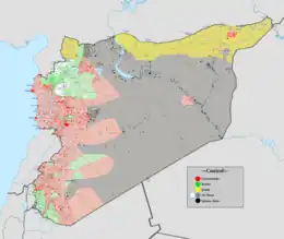 De son côté, la Russie entre dans le conflit syrien en septembre 2015 en intervenant militairement pour soutenir le régime syrien. Cette intervention redonne l'avantage au camp loyaliste : l'armée syrienne et ses alliés remportent des victoires décisives à Alep en décembre 2016, à Homs en mai 2017, à Deir ez-Zor en novembre 2017, dans la Ghouta en mai 2018 et à Deraa en juillet 2018.