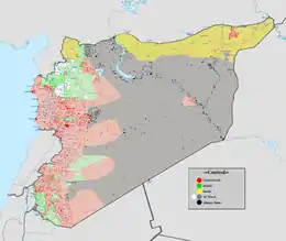 La guerre civile syrienne, aussi appelée révolution syrienne à ses débuts, est un conflit armé en cours depuis 2011 en Syrie. Elle débute dans le contexte du Printemps arabe par des manifestations majoritairement pacifiques en faveur de la démocratie contre le régime baasiste dirigé par le président Bachar el-Assad. Réprimé brutalement par le régime, le mouvement de contestation se transforme peu à peu en une rébellion armée.