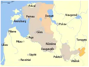 Par la suite ont eu lieu quelques changements territoriaux : en 1346, le Danemark a cédé le duché d'Estonie à l'ordre de Livonie ; des villes ont obtenu des privilèges[3], en particulier dans le cadre de leur appartenance à la Ligue hanséatique : Riga[2],[3], Reval (Tallinn), Dorpat (Tartu)
