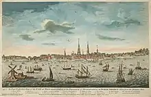 Les treize colonies britanniques, regroupées sur une bande côtière plus étroite, possèdent de 1,5[9] à 2 millions d’habitants vers 1750[5] (il y en avait 4 700 vers 1630[10]). La croissance démographique est due à l’émigration — volontaire et surtout forcée — des minorités religieuses protestantes (Puritains, Quakers…) venues trouver leur terre promise de l’autre côté de l’Atlantique[5]. Cette identité religieuse est très marquée : les colons anglo-américains détestent les « papistes » (catholiques) canadiens qui le leur rendent bien : « la Nouvelle-France arbore son unité catholique comme un étendard » (Edmond Dziembowski)[11]. Au socle « anglo-saxon » (Anglais, Écossais, Irlandais) qui constitue la part la plus importante des arrivants, vient s’ajouter l’immigration d’Europe centrale et septentrionale ainsi que l’apport africain alimentant la main d’œuvre servile des colonies médianes et méridionales[9]. Comme en Nouvelle-France, la majorité des colons vivent à la campagne, mais les villes portuaires (Philadelphie, New York, Boston) sont en pleine croissance[10].