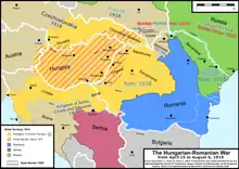 - Seconde phase (août 1919) : les Roumains et l'Armée nationale hongroise (hu) défont l'Armée rouge hongroise et prennent Budapest.