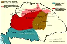 Bleu-vert : territoires sous contrôle de l'armée franco-serbe commandée par Louis Franchet d'Espèrey.