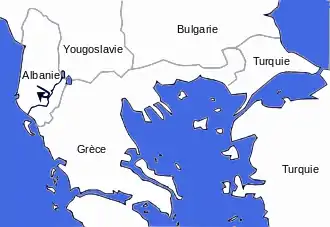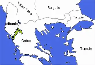 Le front, s'étalant sur 150 km, était un terrain extrêmement montagneux avec peu de routes. La chaîne des monts du Pinde divisait pratiquement la région en deux théâtres d'opérations : l'Épire et la Macédoine de l'ouest.