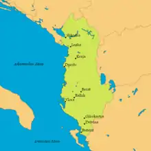 Au printemps 1466, le sultan Mehmed II marche avec son armée contre les Albanais. Sous la direction de leur commandant, Skanderbeg, ils résistent depuis longtemps aux Ottomans et ont demandé à plusieurs reprises l'aide à Venise[4]. Pour les Albanais, le déclenchement de la guerre ottomano-vénitienne offre une chance en or pour réaffirmer leur indépendance ; pour les Vénitiens, ces alliés fournissent une protection utile aux possessions côtières vénitiennes de Durazzo (Durrës) et Scutari (Shkodër ou Shkodra). Le seigneur monténégrin Ivan Crnojević (en), prince de Zeta, joue un rôle important dans la défense de Scutari qui le rend célèbre à Venise. Le principal résultat de cette campagne est la construction de la forteresse d'Elbasan. Cette forteresse située à un emplacement stratégique, dans les basses terres près de l'extrémité de l'ancienne Via Egnatia, coupe l'Albanie en deux, isolant la base de Skanderbeg dans les hautes terres du nord des possessions vénitiennes du sud[23]. Cependant, après le retrait du sultan, Skanderbeg lui-même passe l'hiver en Italie, à la recherche d'aide. À son retour début 1467, ses forces descendent des hautes terres, battent Ballaban Badera (en) et lèvent le siège de la forteresse de Croie (Krujë), et attaquent sans succès Elbasan[24],[25]. Mehmed II répond en marchant à nouveau contre l'Albanie. Il poursuivit énergiquement les attaques contre les forteresses albanaises, tout en envoyant des détachements faire des raids sur les possessions vénitiennes pour les maintenir isolées[21]. Les Ottomans échouent à nouveau à prendre Croie, et ne réussissent pas à soumettre le pays. Cependant, pendant l'hiver se déclare une épidémie de peste qui affaiblit la résistance locale[21]. Skanderbeg meurt de la malaria dans la forteresse vénitienne de Lissus (Lezhë), mettant fin à la capacité de Venise à utiliser les seigneurs albanais pour son propre avantage[23]. Les Albanais sont laissés à eux-mêmes et progressivement soumis au cours de la décennie suivante.