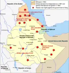 L'article sur les guerres civiles en Éthiopie (1974-1991)[1] recense les conflits qui se déroulent en Éthiopie entre le lorsque le Derg réalisa un coup d'État contre l'empereur Hailé Sélassié et la prise du pouvoir par le Front démocratique révolutionnaire du peuple éthiopien (FDRPE), en 1991.