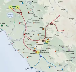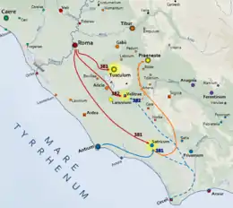 | Localisation de Velitrae et Tusculum. |