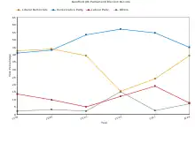 - Notional, based on pact kept here for Liberals to field candidates, pre-merger in forming the Liberal Democrats
