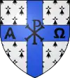 Différences entre dessin et blasonnement : La croix est d'azur, le chrismon complet est de sable..
