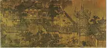 - Montagnes et pavillons à étages près d'une rivière, probablement de l'époque Ming.