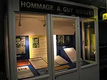 Au milieu de l’un des quais, une vitrine présentait des reproductions de photographies de Guy Môquet, sa mère, et son père Prosper Môquet, de sa dernière lettre et divers documents. À l’occasion de la commémoration du , les étagères ont été repeintes et le matériel luminaire a été renouvelé[6].