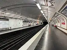 Au début des années 1960, les piédroits sur les quais sont revêtus d'un carrossage métallique avec montants horizontaux bleus et cadres publicitaires dorés éclairés. Cet aménagement, alors largement utilisé sur le réseau en tant que moyen peu coûteux de rénover les stations rapidement, est initialement complété de bancs jaunes, remplacés par des sièges de style « Motte » blancs par la suite.