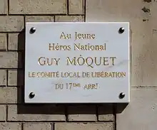 Guy Môquet, né le à Paris et mort le à Châteaubriant (Loire-Inférieure[1]), est un militant communiste, célèbre pour avoir été le plus jeune des quarante-huit otages fusillés, le , à Châteaubriant, Nantes et Paris en représailles après la mort de Karl Hotz[2],[3].