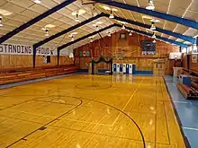 Afin d'y accueillir du public, la salle principale (appelé parfois « plateau d'évolution », « espace d'évolution » ou « aire d'évolution ») recouverte d'un sol parqueté, en PVC ou en linoleum, peut être dotée de gradins. Celle-ci est presque systématiquement accompagnée de pièces annexes comme : des vestiaires dotés de sanitaires (douches, toilettes, …), des salles musculation, des locaux d'entreposage du matériel, des locaux techniques, des locaux administratifs, etc. Certains gymnases peuvent comporter plusieurs autres « espaces d'évolution » secondaires.