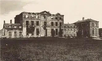 Le seul vestige de l'ancienne église abbatiale Notre-Dame-de-Clairefontaine, à savoir un portail en plein cintre, est remonté en 1914 dans le parc du château. Pendant la Première Guerre mondiale, M. et Mme Standish contribuent aux soins des blessés français et anglais qui arrivent à Rambouillet et accueillent à leurs frais, les convalescents dans leur propriété de Montjoye de 1914 à 1918[72].