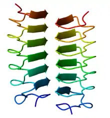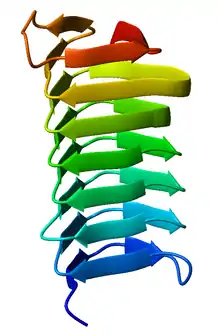Une hélice β est un élément de structure secondaire des protéines formé par l'association de brins β parallèles disposés de manière hélicoïdale à deux ou trois faces. Il s'agit d'un type de domaine protéique en solénoïde. La structure est stabilisée par des liaisons hydrogène inter-brins, des interactions protéine-protéine et parfois des ions métalliques liés. On a pu observer aussi bien des hélices droites que des hélices gauches.