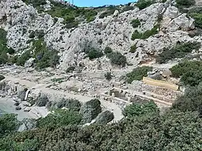 À l'est a été creusée une grande citerne hellénistique à abside (vers le IVe siècle av. J.-C.) dont le plafond était soutenu par des piliers encore en place[1].