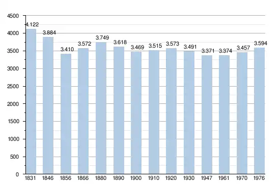Les chiffres des années 1831 à 1970 tiennent compte des chiffres des anciennes communes fusionnées.