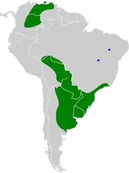 L'aire de répartition de ce héron est a priori restreinte à l'Amérique du Sud[4],[2] et il se retrouve au Venezuela, en Colombie, au Brésil, en Bolivie, au Paraguay, en Uruguay et en Argentine[2]. Il a été cependant récemment observé au Costa Rica[4]. Le bassin de l'Amazone sépare deux populations, Syrigma sibilatrix fostersmithi au nord et Syrigma sibilatrix sibilatrix au sud[2].