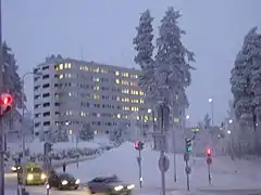L'hôpital central de Kainuu, qui se composait d'une tour de dix étages et d'une base de trois étages, est construit en 1968. L'hôpital central de Kainuu à Kajaani était basé sur une proposition de l'architecte Reino Koivula qui a remporté le concours d'architecte ne 1962[2].