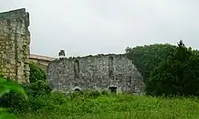 Le portail situé face à la salle des malades (côté est du porche) donnait accès à l'ancienne église prieurale dont il ne subsiste plus que quelques vestiges. Celle-ci conserve néanmoins une partie des murs gouttereaux de la nef, laquelle témoigne par ses dimensions (38 mètres sur 17) de l'importance de l'ancien sanctuaire[3].