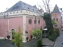 De l'ensemble primitif, commencé par l'archevêque Siegfried III d'Eppstein vers 1236, sont conservées deux grandes salles à trois vaisseaux. La première, dans laquelle on pénètre par une porte romane, est éclairée par un triplet et couverte de voûtes d'arêtes ; au-dessus se trouvait la chapelle, dont l'abside, percée de fenêtres en plein cintre est encore conservée. Derrière, une grande et haute salle gothique, à nef et collatéraux de même hauteur, est couverte de voûtes aux nombreuses nervures portées par de hautes et minces colonnes.