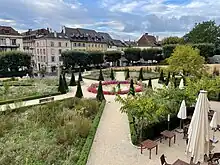 Aujourd’hui seuls l’hôtel particulier, ses dépendances immédiates et le parterre sud sont conservés, un jardin qui a fait l’objet de travaux de conservation et d’une remise en valeur de 2021 à 2023[11]. Dans une vision à la fois contemporaine et respectueuse du patrimoine, le chantier s’est attaché à consolider les murs des rampes, à restaurer le portail et à concevoir un nouvel aménagement végétal. Des arbres fruitiers ont été conduit en espaliers contre les murs, alors que les buis qui entouraient les espaces verts ont été remplacés par du romarin et le gazon a cédé la place à des plantes vivaces. L’idée était de passer d’une nature figée et stérile à un biotope vivant[12]. Des éléments comme le bassin du XVIIIe siècle, la « Baigneuse » réalisé par le sculpteur André Ramseyer en 1953[5] et le magnolia étoilé sont demeurés en place, alors que quelques jeunes ifs topiaires ont remplacé leurs homologues vieillissants. Enfin l’alignement de marronniers de la terrasse du restaurant ont cédé la place à six mûriers[13].