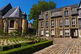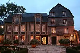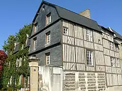 Le bâtiment a été construit en 2 parties, l’ensemble forme un « L » ; il s'élève à 15 mètres de haut, sur 3 étages. La toiture est inclinée à 45°, cette inclinaison se fait appeler combles à la « Mansarde ». La façade est rythmée par 20 fenêtres, 2 œils-de-bœuf et 1 porte-fenêtre. Autant de fenêtres étaient nécessaires à cette époque pour faire entrer le plus de lumière possible dans l’hôtel. Les différents matériaux de la façade principale sont de l’ardoise, en bardage et en couverture, du silex noir, de la brique et de la pierre de Caen. Les différents matériaux de la façade et de l'intérieur du mur de façade sont du silex et de la brique en soubassement, des colombages en bois et du torchis. Il s'agit d'une architecture typiquement régionale.