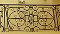 L'entablement à modillons, qui supporte le balcon du premier étage est orné d'une belle grille à rinceaux et volutes en fer forgé, dans laquelle la famille de Bruny fit insérer en 1758 un cerf courant, emblème de leur Maison. La fenêtre centrale est encadré par de chaque côté par deux pilastres d'ordre ionique que surmonte un fronton curviligne.