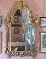 Cette pièce est considérée comme étant la plus belle de la demeure, son riche décor de gypseries dorées , écrin de clavecin de style Louis XV, avec une table de jeu et un jeu de bingo du XVIIIe siècle, des fauteuils à motifs floraux, une harpe peinte, une paire d'appliques Louis XV en bronze doré, des représentations de putti et de scène mythologiques.